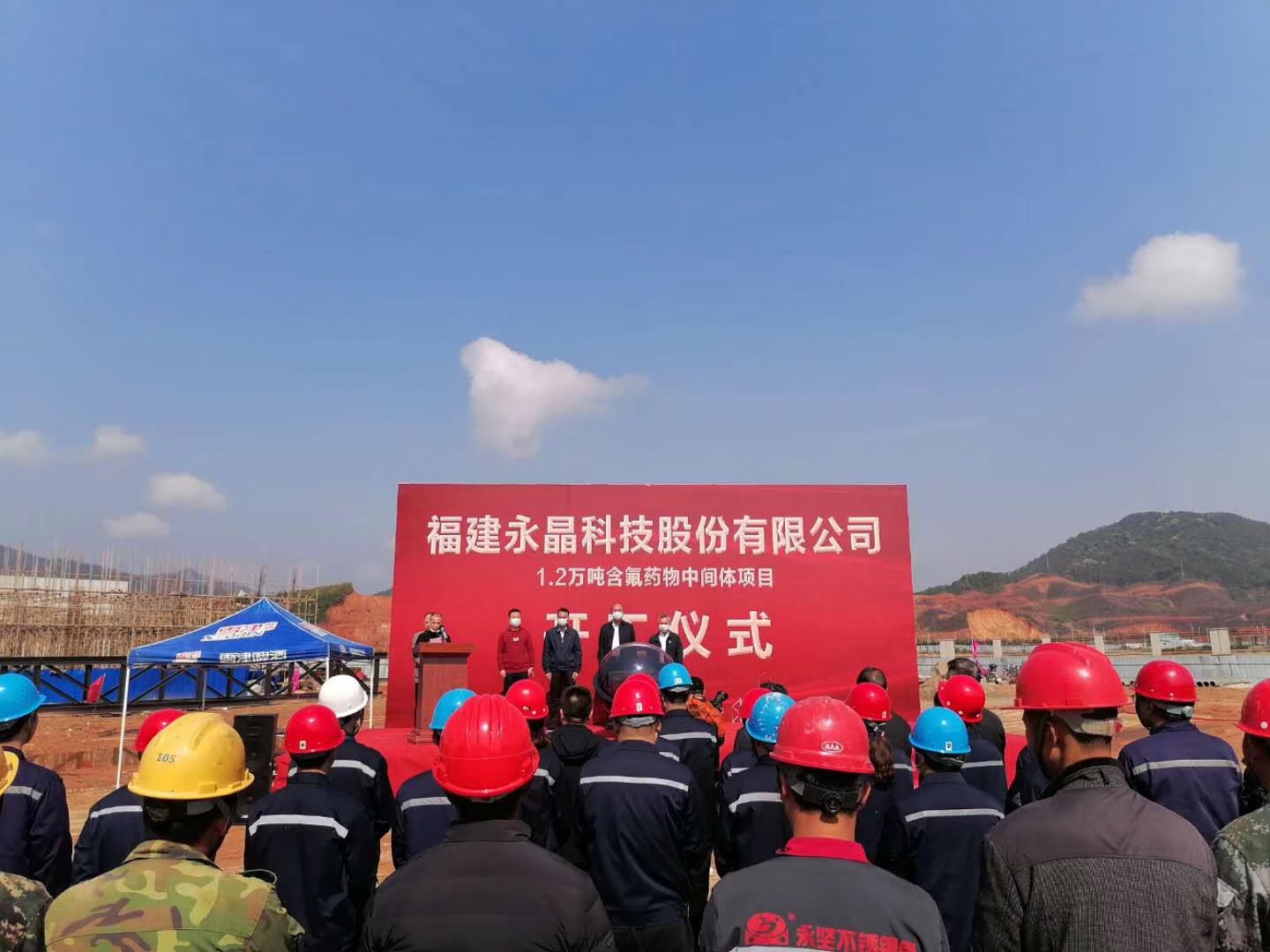 2020年4月24日,福建永晶科技股份有限公司1.2萬(wàn)噸含氟藥物中間體項(xiàng)目開(kāi)工儀式在金塘工業(yè)園區(qū)舉辦。