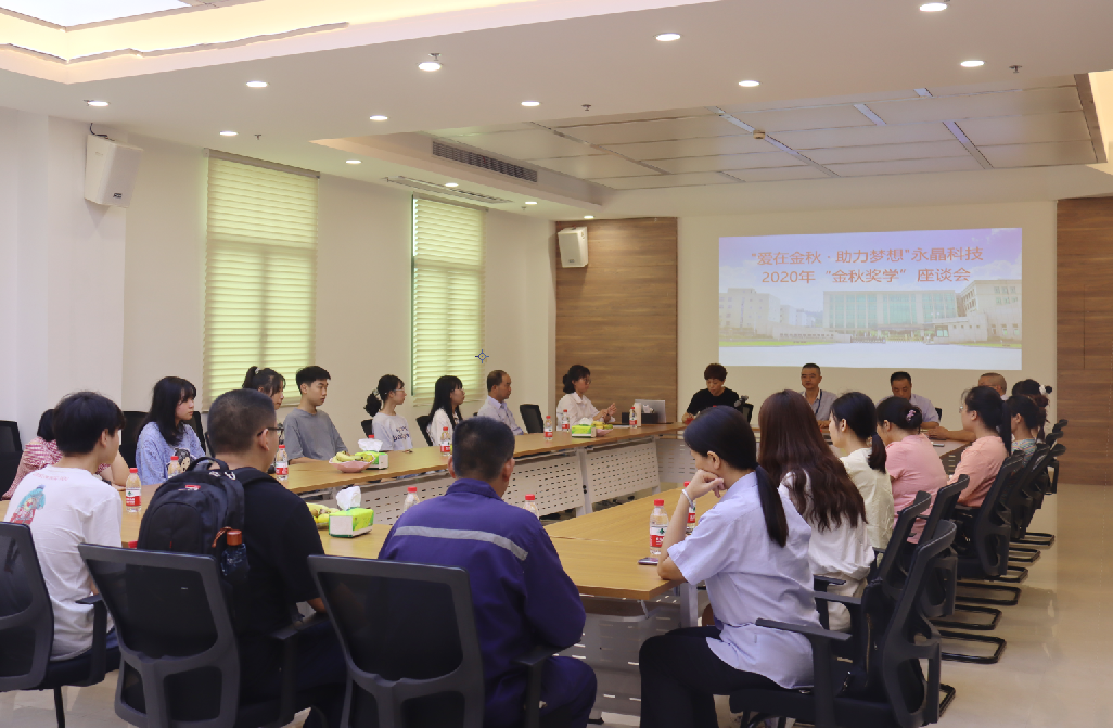 又是一年開學(xué)季,助學(xué)圓夢(mèng)正當(dāng)時(shí)。2020年9月14日,永晶科技工會(huì)組織召開“愛在金秋·助力夢(mèng)想”2020年助學(xué)獎(jiǎng)勵(lì)金發(fā)放座談會(huì),向取得優(yōu)異成績(jī)的職工子女致以誠(chéng)摯的問(wèn)候和美好的祝福。公司副總經(jīng)理兼工會(huì)主席任清貴、工會(huì)副主席兼人力資源部部長(zhǎng)洪勝財(cái)、大學(xué)新生及學(xué)生家長(zhǎng)代表共計(jì)30余人參加了座談會(huì)。