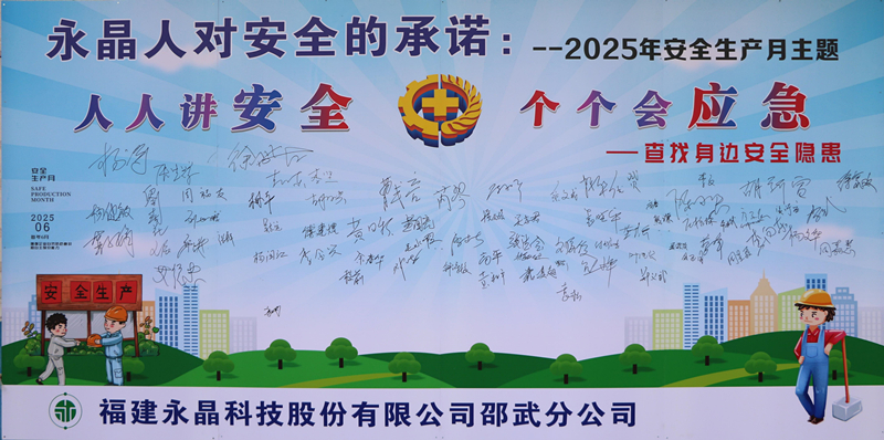 安全之路,始于承諾,重在行動(dòng),貴在堅(jiān)持。永晶科技總部與邵武分公司相繼成功舉辦2025年“安全生產(chǎn)月”啟動(dòng)大會(huì),不僅是一場(chǎng)隆重的儀式,更是一次深刻的安全動(dòng)員和教育。從高層承諾到基層宣誓,從方案部署到隱患排查,從總部引領(lǐng)到屬地落實(shí),每一個(gè)環(huán)節(jié)均彰顯永晶科技對(duì)安全生產(chǎn)的敬畏之心及永不懈怠的責(zé)任擔(dān)當(dāng)。